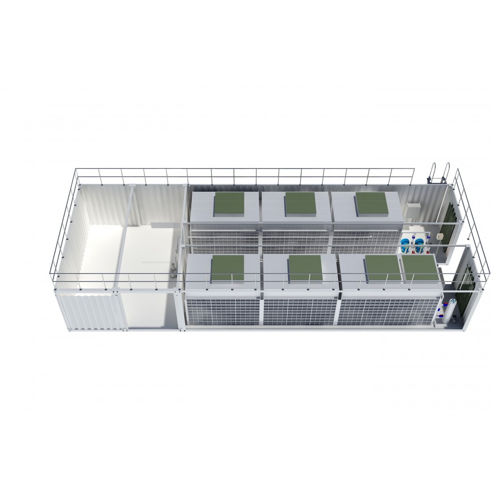 «ТОПЛОС-КМ/Е» – это контейнерное исполнение комплекса очистки стоков, в котором в базовых контейнерах располагаются блоки УОСВ (представляющие собой отдельные функциональные единицы оборудования биологической очистки, доочистки и стабилизации ила), а также воздуходувки, установка УФ обеззараживания. Усреднитель «собирается» из отдельных контейнеров.